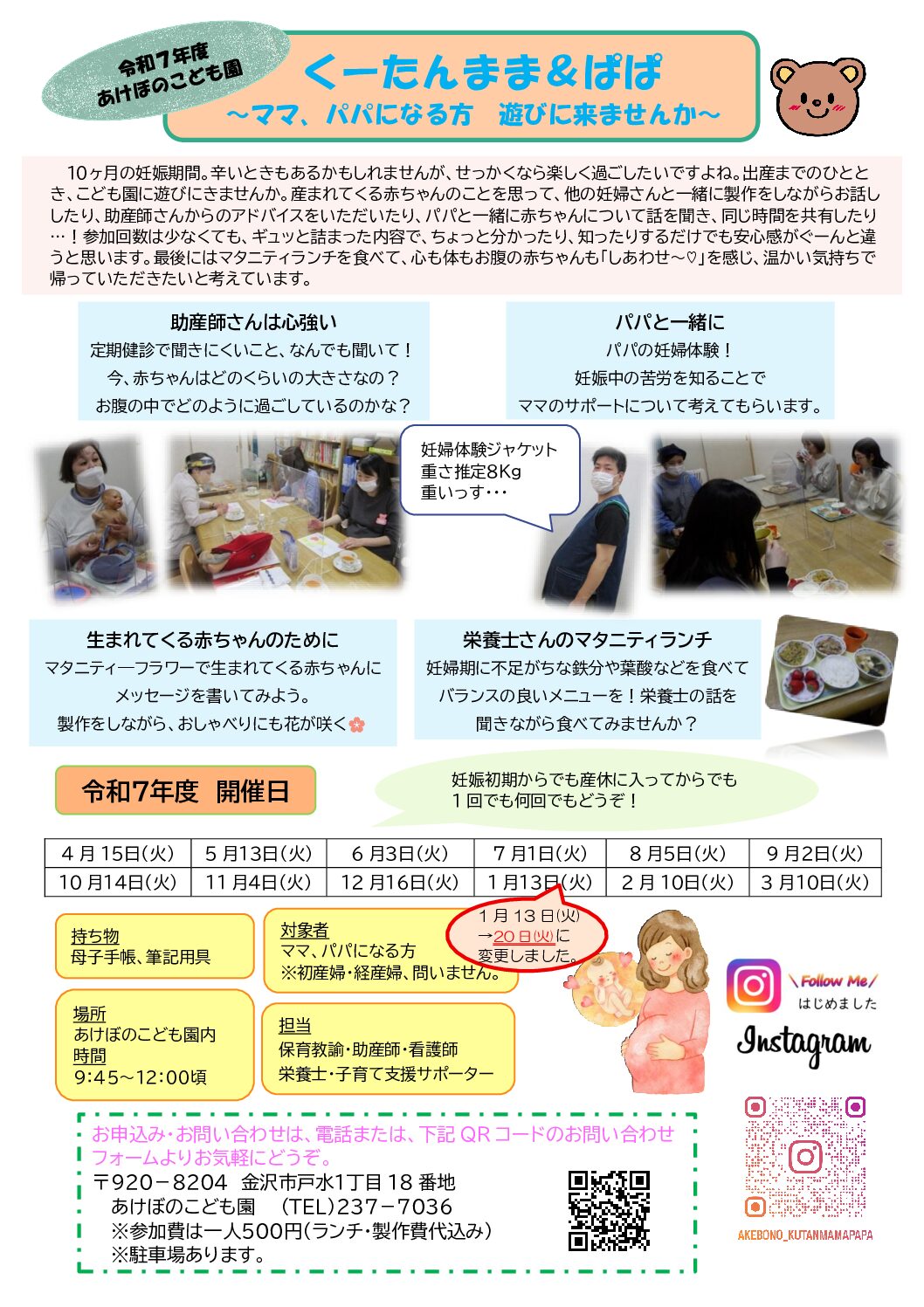 地域子育て支援 【くーたんのおうち】 【くーたんまま&ぱぱ】 #あけぼのこども園 #金沢市 #県庁周辺 #子育て支援 #子育て支援教室 #マタニティ教室 #プレママ #妊婦教室 #助産師 #マタニティランチ #妊婦さん向け #マタニティ体験